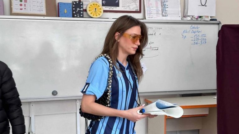 Serenay Sarıkaya formasıyla oy kullanmaya gitti